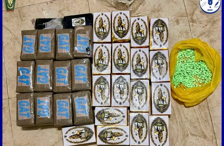 وأسفرت العملية عن ضبط 21 كلغ و240 غراماً من المخدرات، إضافة إلى 480 قرصاً من الحبوب المهلوسة.