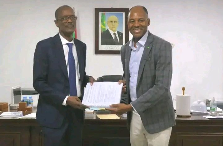 تم اليوم بمباني مؤسسة ميناء خليج تبادل المهام بين المدير العام الجديد السيد مختار ملل جا والمدير العام السابق السيد الطالب ولد سيد أحمد.