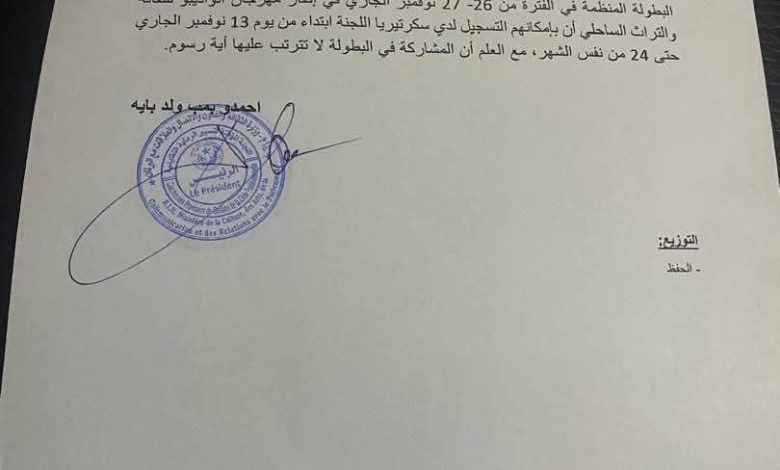 الإعلان عن انطلاق التسجيل لبطولة الرماية التقليدية ضمن فعاليات مهرجان نواذيبو للثقافة والتراث الساحلي