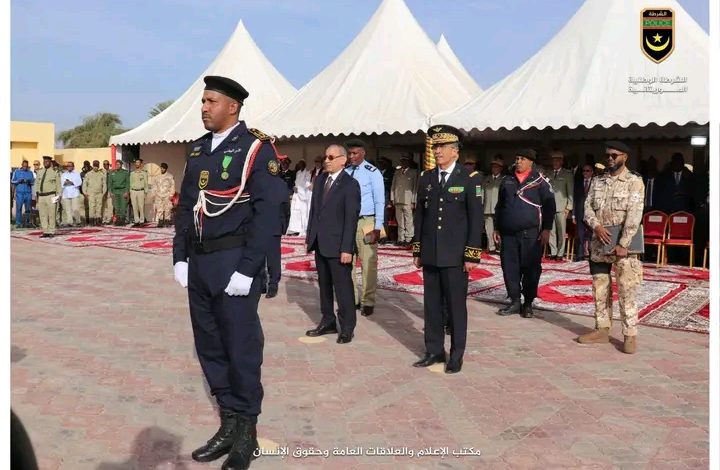 وقد بدأ الحفل بإستعراض وزير الداخلية واللامركزية محمد احمد ولد محمد الأمين رفقة المدير العام للأمن الوطني الفريق محمد لحريطاني تشكيلات من الشرطة الوطنية أدت لهما تحية الشرف قبل أن يصافحا عددا من الضباط وضباط الصف والوكلاء.