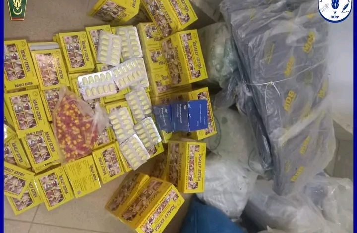وقد أسفر التفتيش عن ضبط مواد محظورة، كان المعني ينقلها على متن دراجة ثلاثية العجلات، من ضمنها أدوية غير مرخصة.